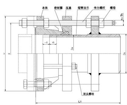傳力接頭是泵、閥門等設備與管道連接的新產品,通過全螺栓把它們連接起來,使其成為一個整體,并有一定的位移量,這樣就可以在安裝維修時,根據現場安裝尺寸進行調整,在工作時,可以把軸向推力傳還至整個管道。這樣不僅提高工作效率,而切對泵、閥們等設備起到一定保護作用。